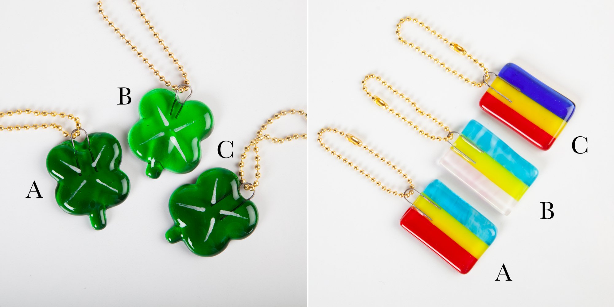 Fused Glass Lucky Charm keychains! Dangle from your purse, rear view mirror or anywhere you want to carry good luck with you.