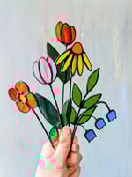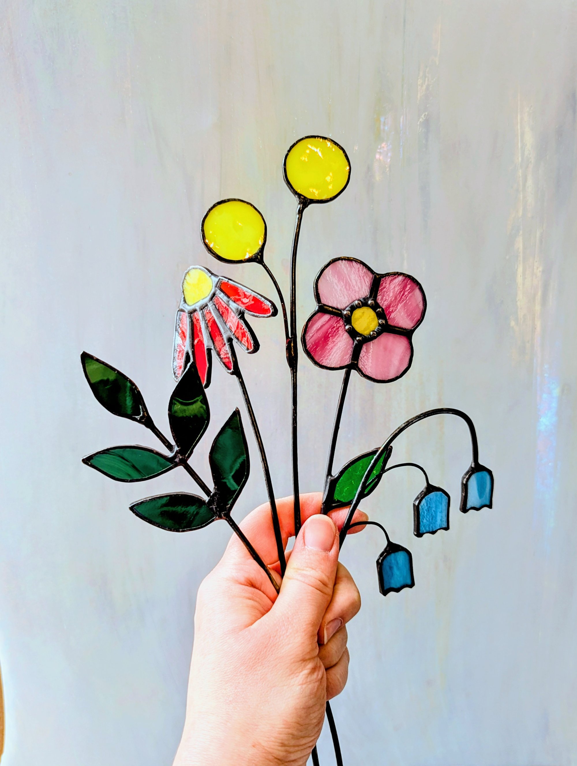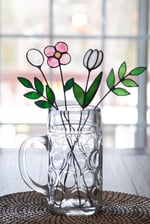 These stained glass flowers are heirloom quality and don't require water to stay alive! Combine them into a bouquet or display them individually - either way the beauty of the coloured glass will shine into your home.